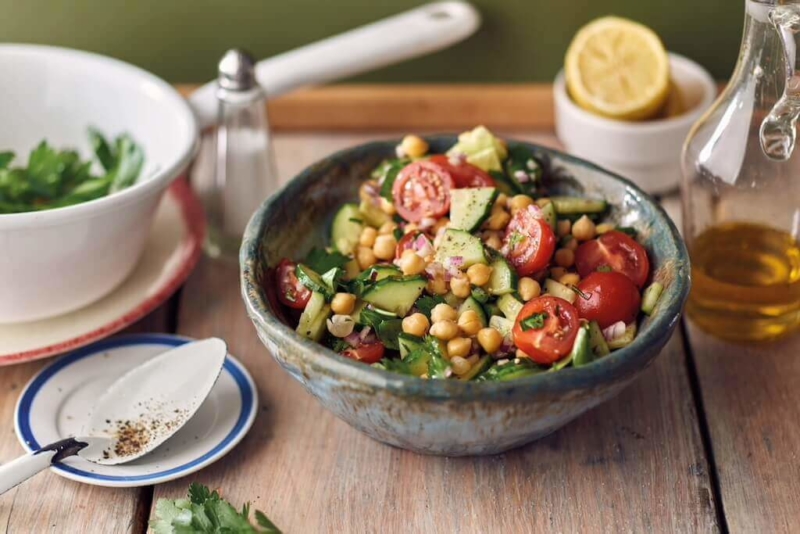 Auch aus Kichererbsen lassen sich leckere Salate kreieren. Doch das ist bei Weitem noch nicht alles! Besonders beliebt sind die veganen Proteinquellen unter anderem auch dann, wenn sie beispielsweise zu Hummus oder zu einem leckeren Dip für Chips verarbeitet wurden.