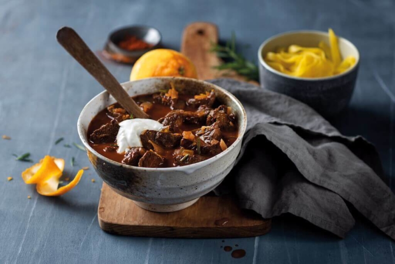 Bei Gulasch handelt es sich um ein Schmorgericht. Das bedeutet, dass die Zutaten lange zusammen bei mittlerer Hitze geschmort werden müssen. Auf diese Weise wird das Fleisch schön zart.