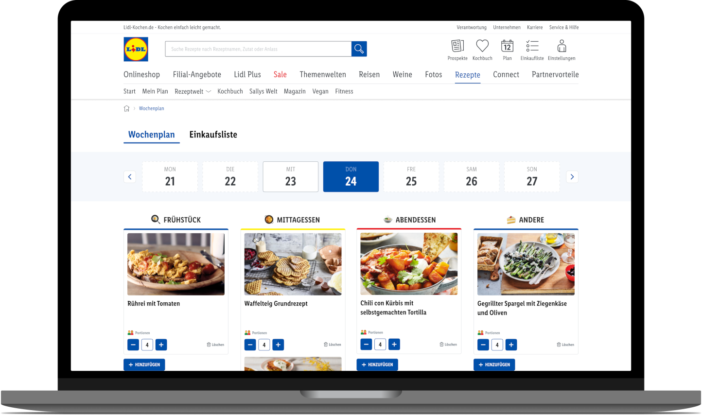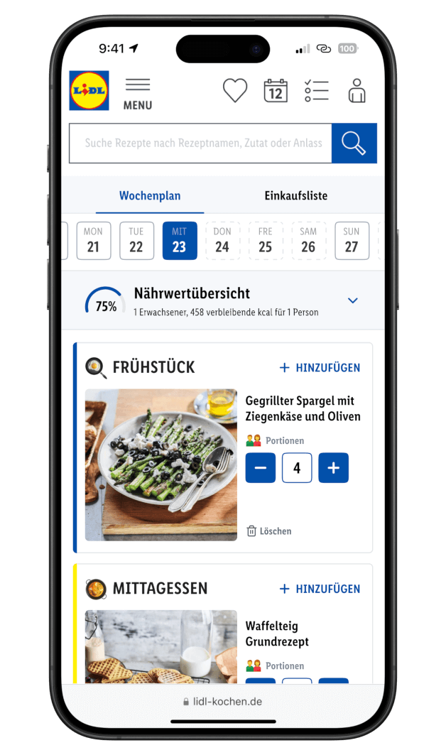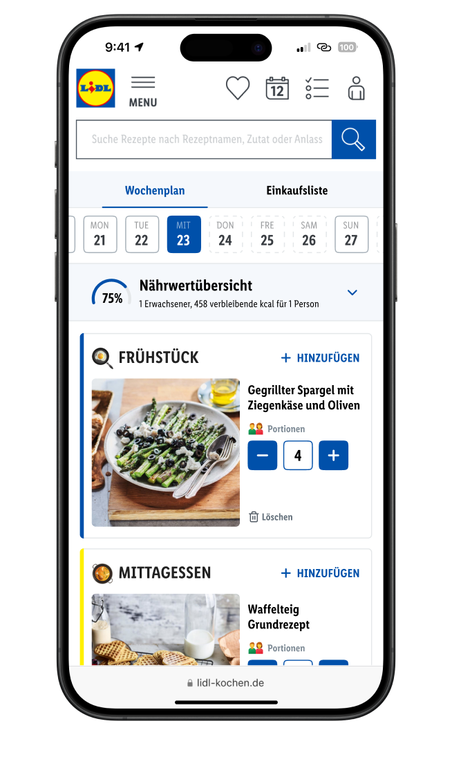 Der Lidl Wochenplan ist der individuell auf deine Vorlieben abgestimmte Essensplan mit zahlreichen leckeren & einfachen Rezepten. Mit diesem praktischen Wochenplan sparst du viel Energie, Zeit und Geld bei der wöchentlichen Essensplanung. Erstelle dir jetzt in nur wenigen Schritten deinen persönlichen Wochenplan.